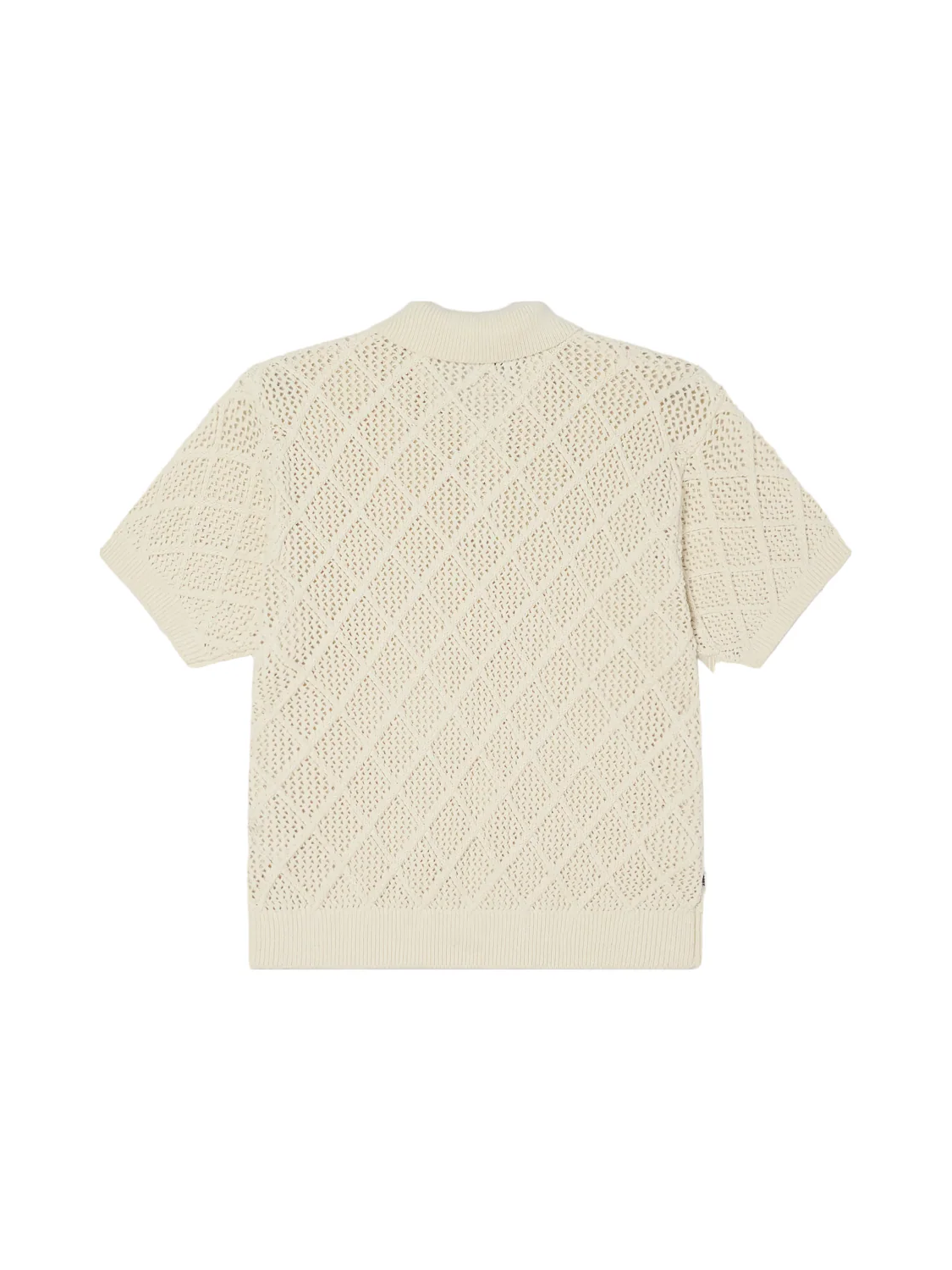 A textured knit short sleeve polo sweater. Featuring rib polo collar, button placket and rib cuff and hem.